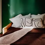 Konuklar terasa açılan odalarda dinlenebilirler. Bu daire dağa bakmaktadır.